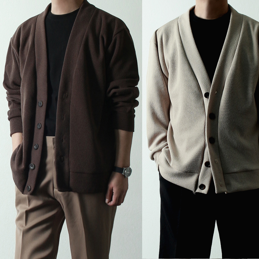 남자 가디건 오버핏 소프트 니트 셔츠 정장 코디 남성 빅사이즈 V넥 봄 가을 9컬러 브라운 베이지_RTCA02