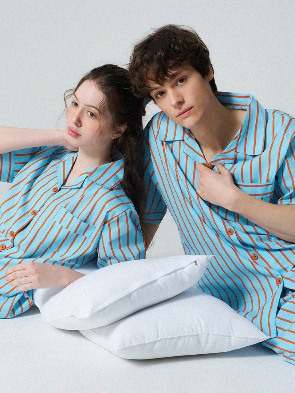 만다린 코튼블렌드 반팔 카라 잠옷 세트