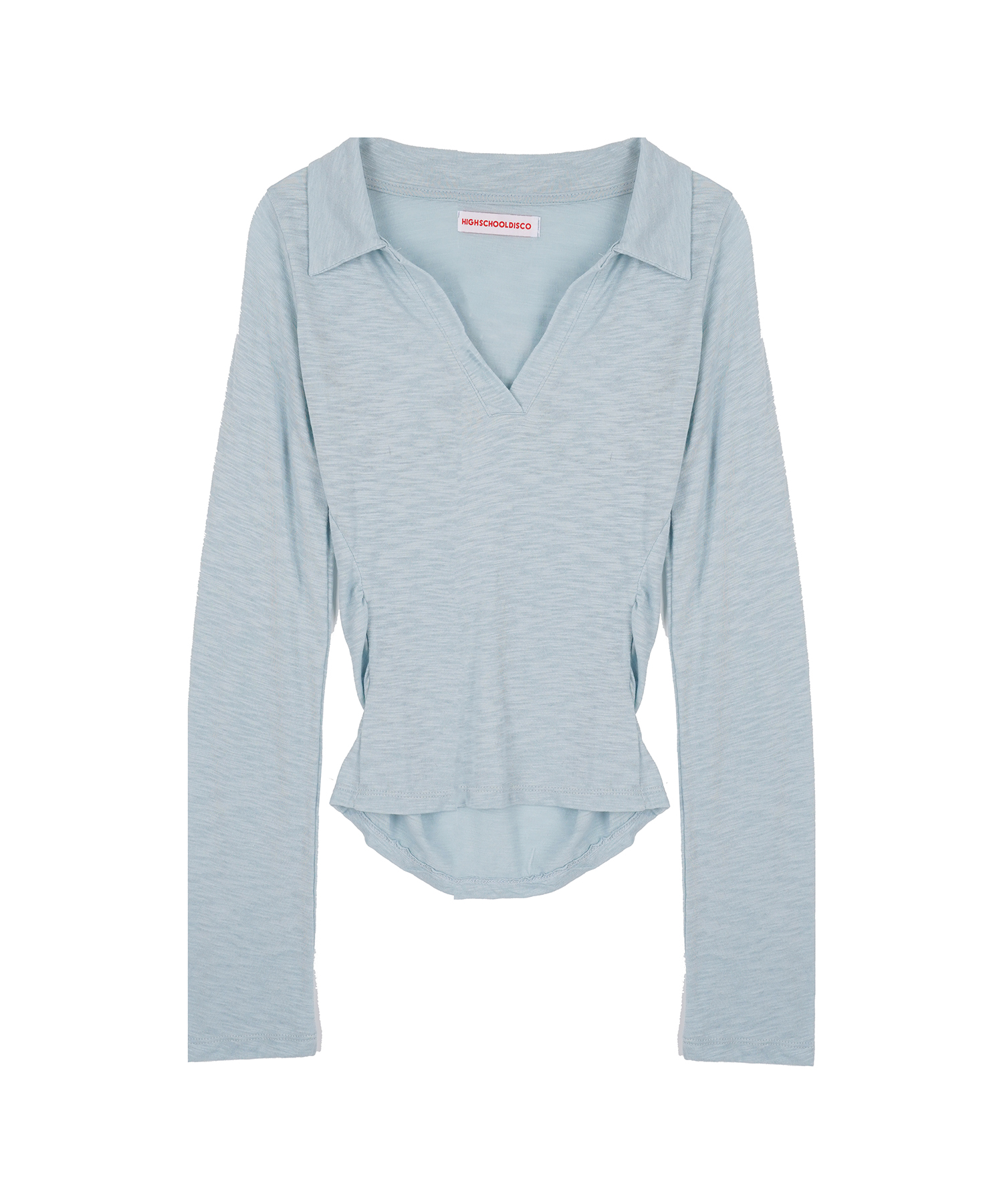 V넥 셔링 카라 슬라브티셔츠_스카이블루