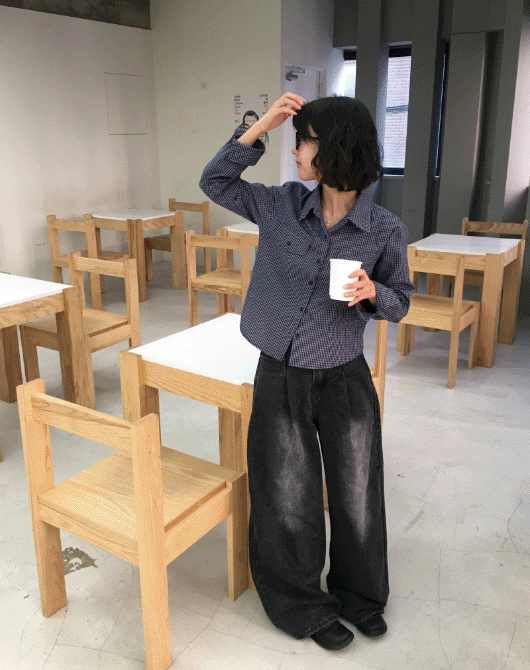 추천! 그릭 크롭 체크 셔츠 (2color)