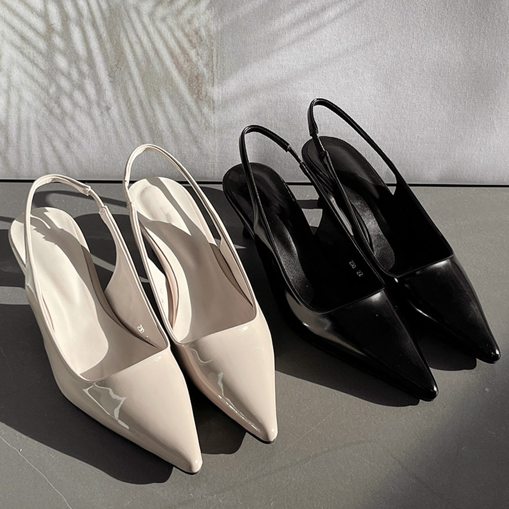 [6cm/스트랩밴딩🖤] 가나다란 셰리 에나멜 미들힐 구두 펌프스 스틸레토 힐 2color