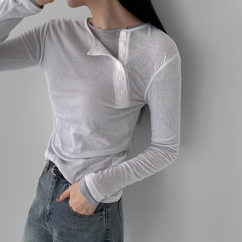 [키큰여자]소마*사선버튼슬림티셔츠[텐셀70%]