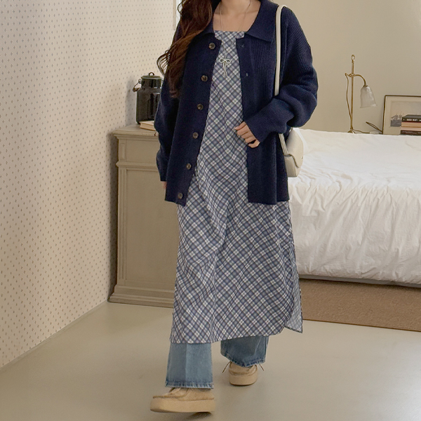 [빅사이즈]이블렛 뮤헨타 체크 트임 뷔스티에 롱 원피스 제이스타일