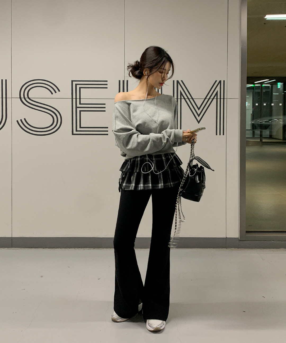 웰로우 부츠컷 레깅스 슬릿 블랙 트레이닝 팬츠