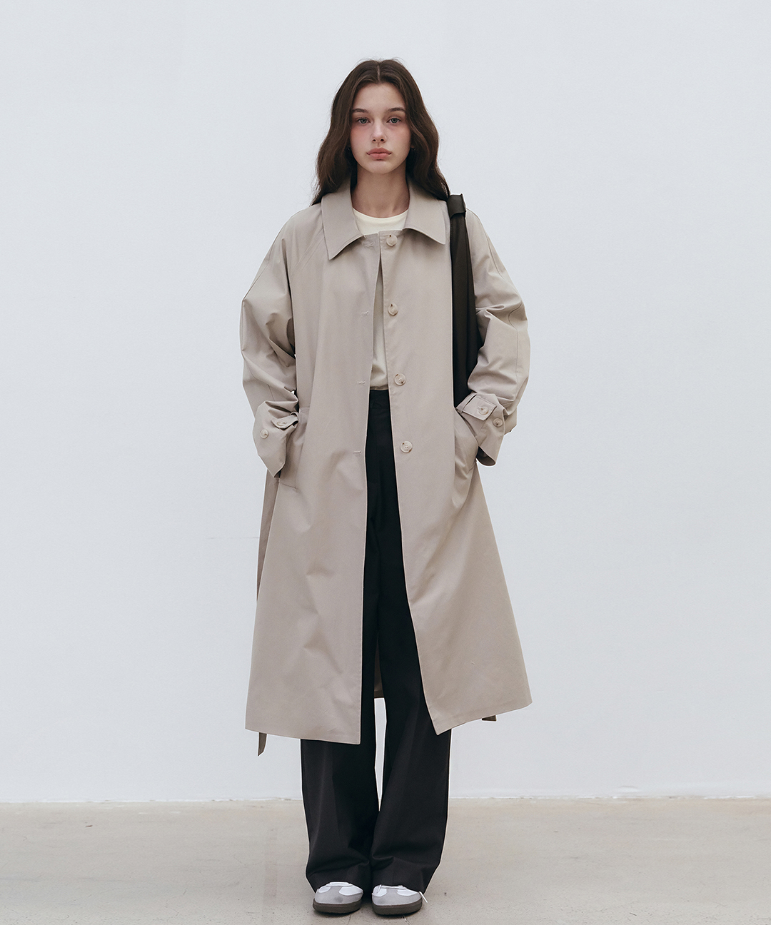 래글런 코튼 롱 트렌치 코트 - 그레이