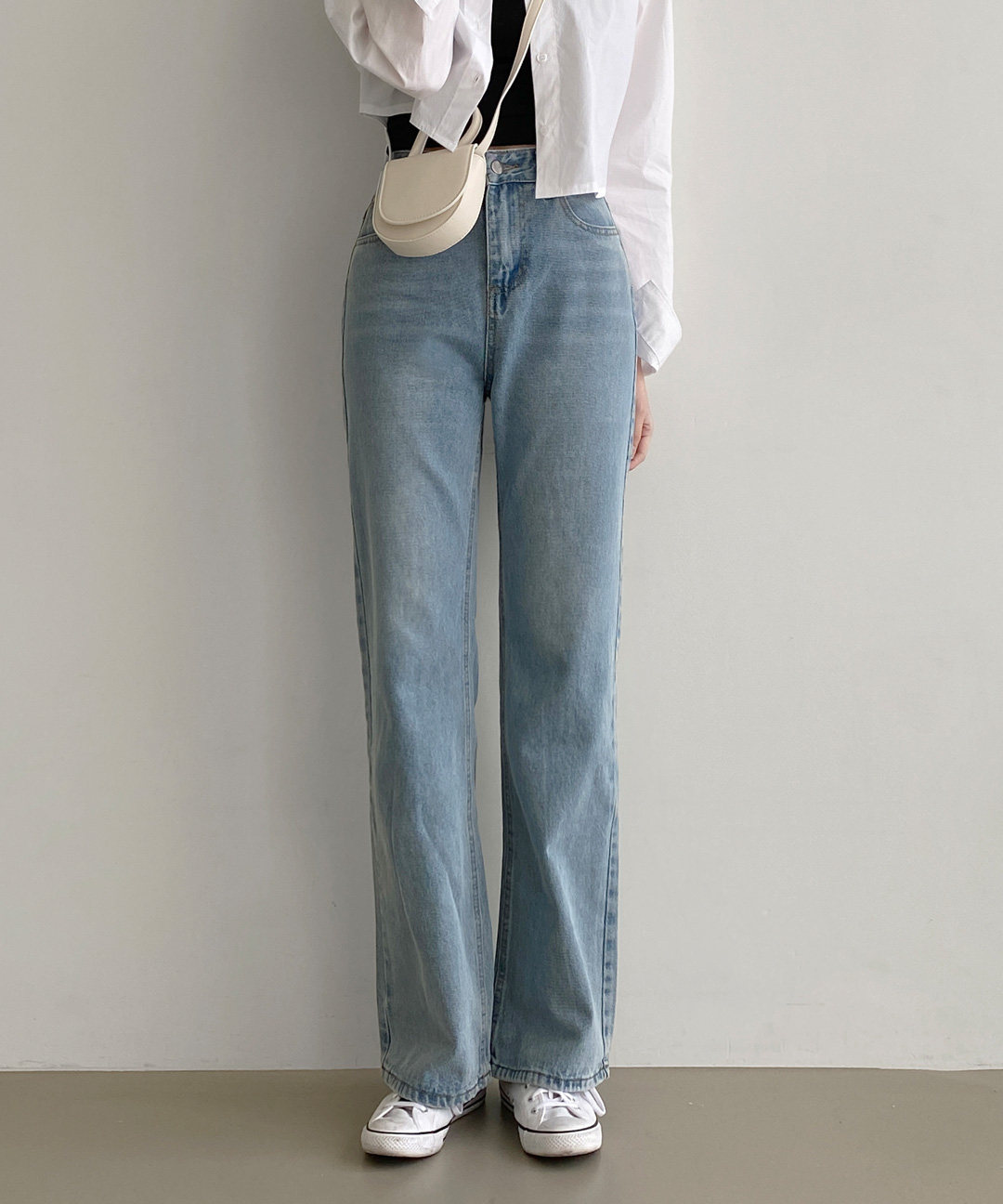 [Made ZIN] 하이웨스트 롱 일자 워싱 청바지