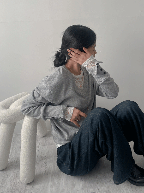 알파 단추 브이넥 루즈핏 니트