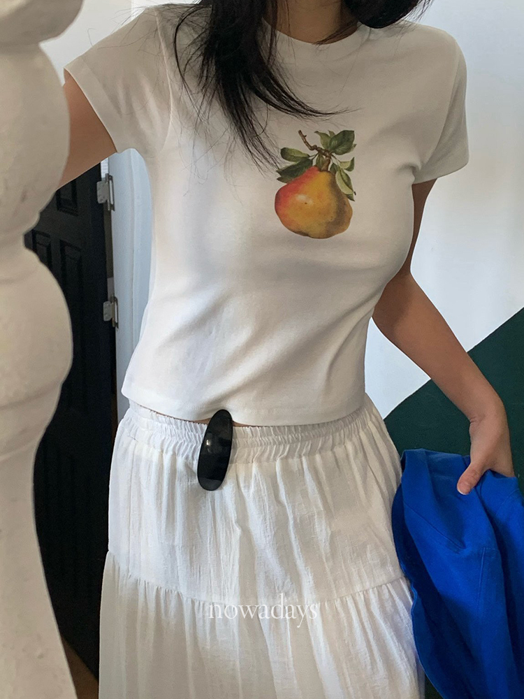 아미먼트 쥬시 티셔츠 코튼 반팔 라운드 프린팅 크롭 t (2col)