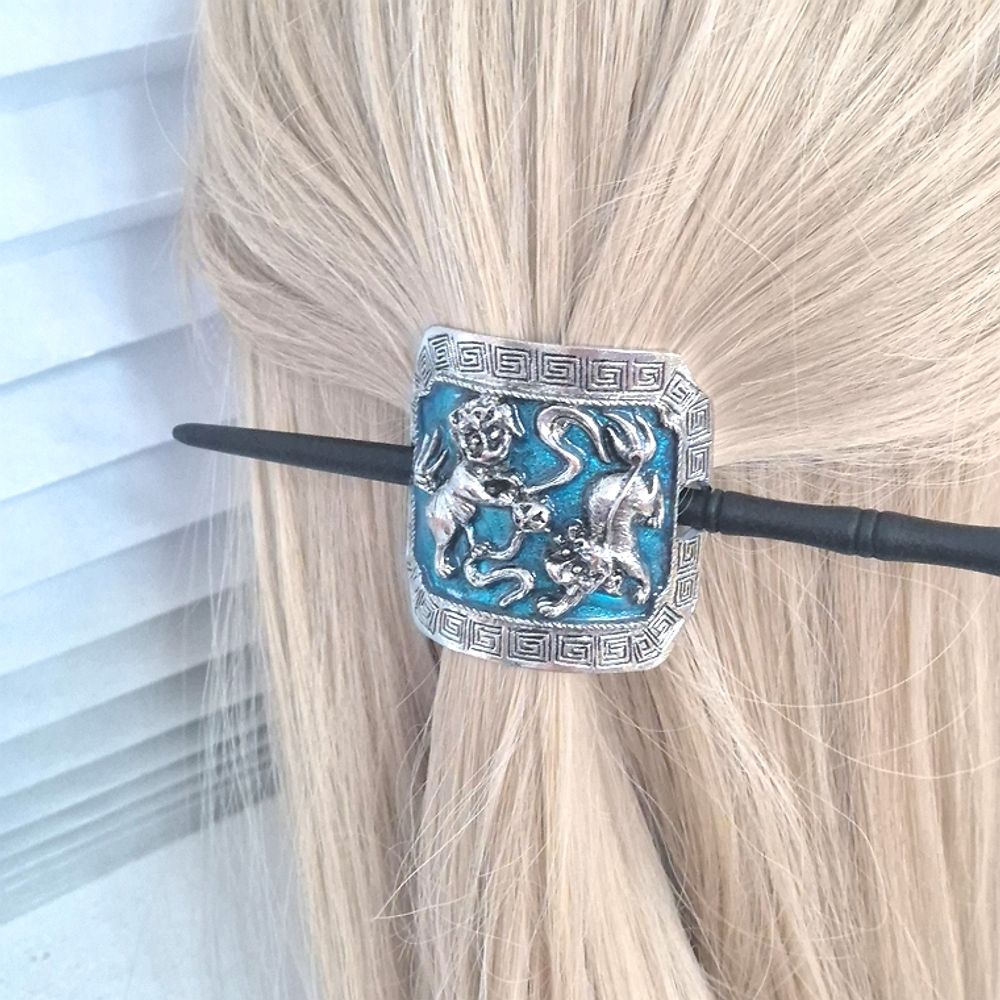 데일리 조각비녀 패션 오리엔탈 블루 철제