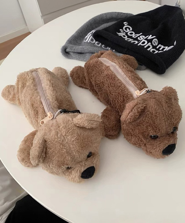 [2color]귀여운 테디베어 곰돌이 인형 필통 대용량 화장품 파우치 필기구 펜 수납 정리