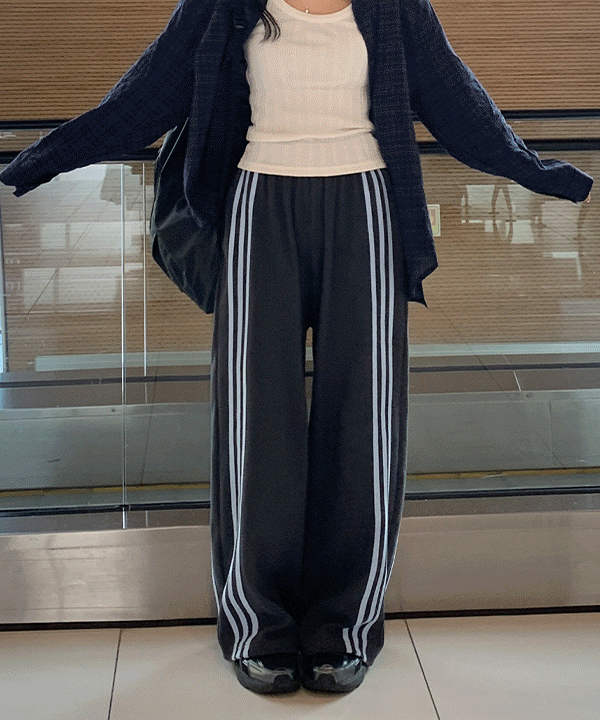 베이큰 라인 밴딩 와이드 트랙 팬츠 -4color