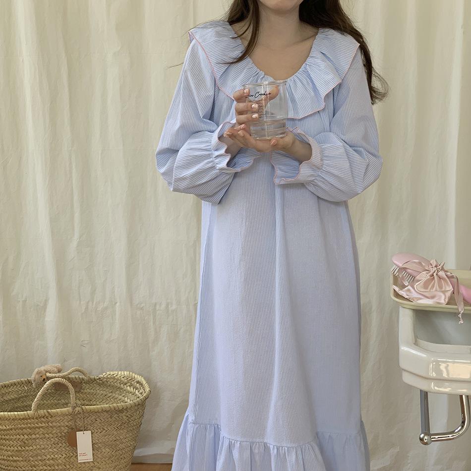 (아로마원피스잠옷) 여성잠옷 빅사이즈 홈웨어 파자마 임산부 라운드 카라 2컬러 봄 여름