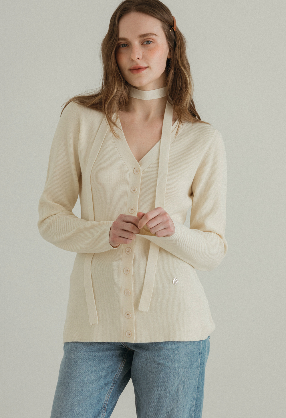허그 스카프 브이넥 니트 가디건