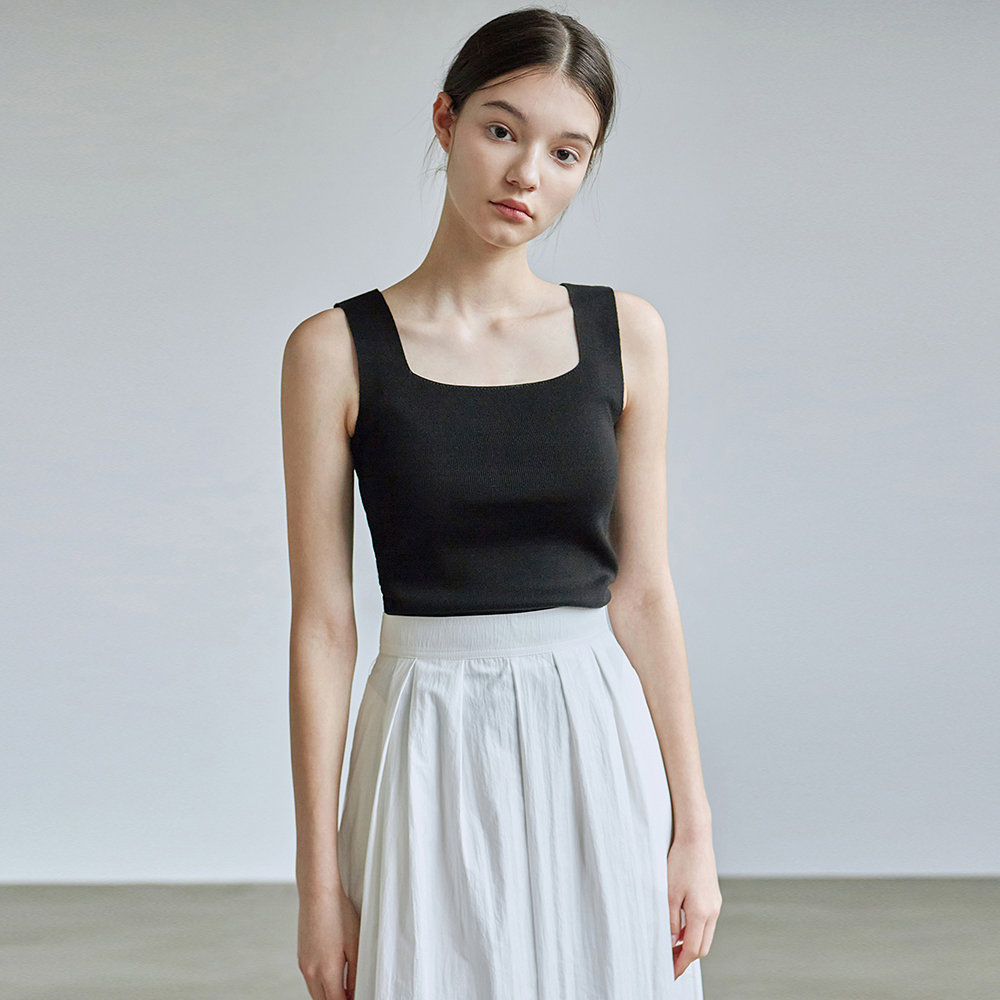 SQUARE NECK KNIT SLEEVELESS_BLACK