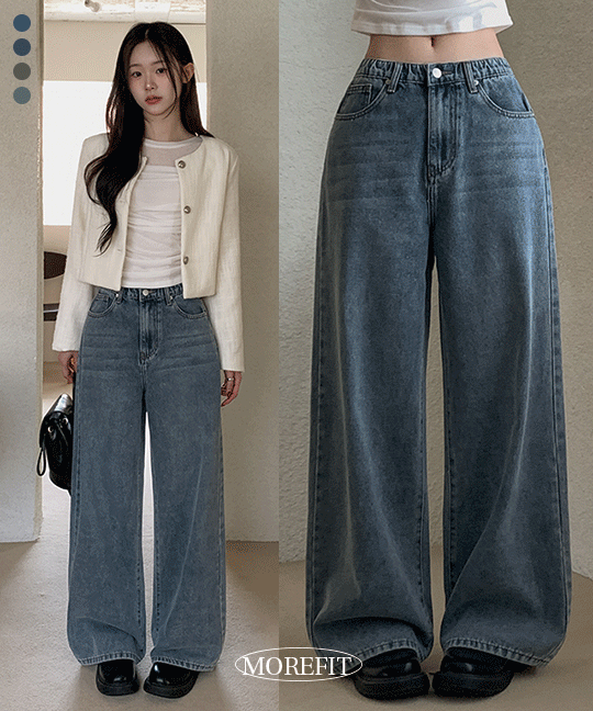 [숏,롱/뒷밴딩!] 베이가 와이드핏 워싱 데님 롱 팬츠 4colors