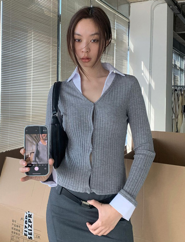 웨츠 셔츠 카라 골지 버튼 가디건 (2color)
