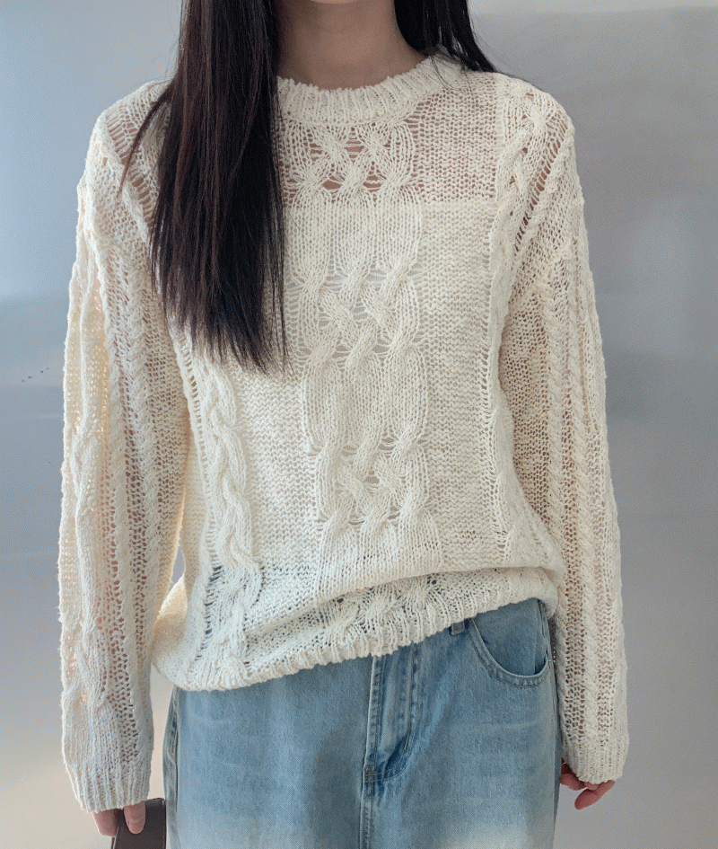 바츠 시스루 케이블 니트 (꽈배기,여름까지)
