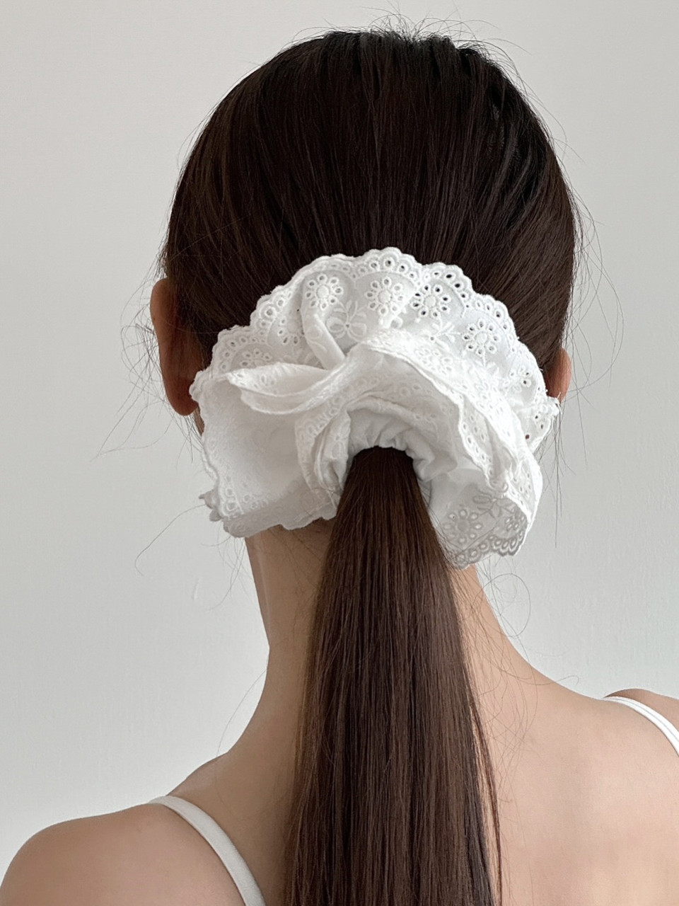 소프트 아일렛 더블 레이어 헤어 스크런치 면 레이스 여름 곱창밴드