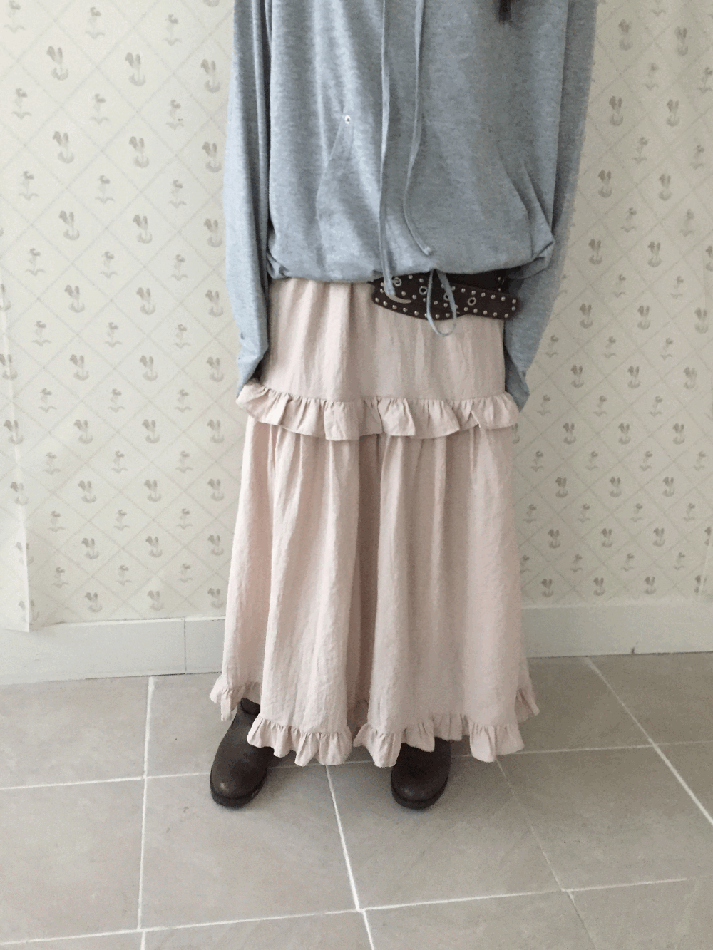 슬로이 프릴 밴딩 롱스커트 (2c)