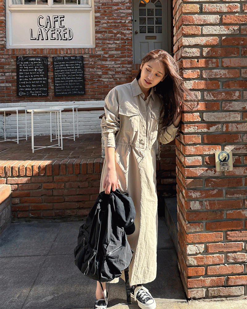 [55~110]신상/봄/하객룩/소개팅룩/데이트룩/아우터룩/봄아우터/투웨이룩/자체제작/트렌치/데일리룩 바스락스트링포켓롱원피스