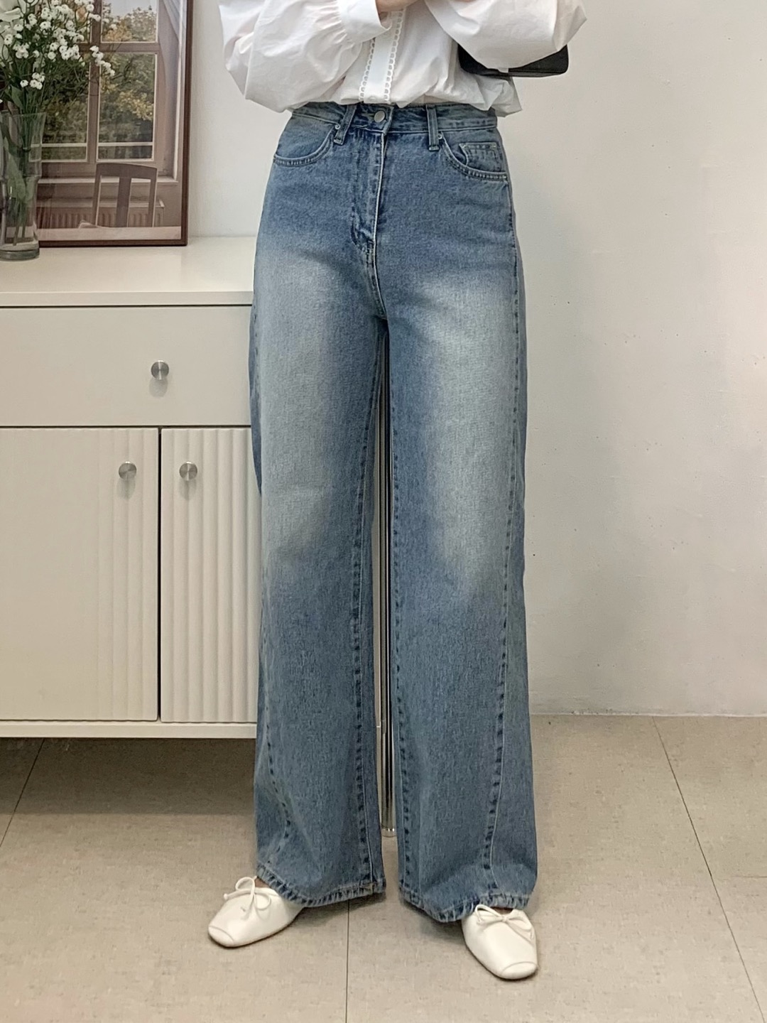 워싱 절개라인 연청바지 세미와이드청바지 사선절개 일자와이드데님