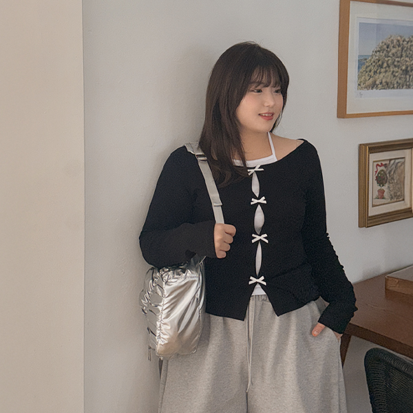 [빅사이즈]이블렛 미츠온 리본 레이어드 홀터넥 티셔츠 제이스타일