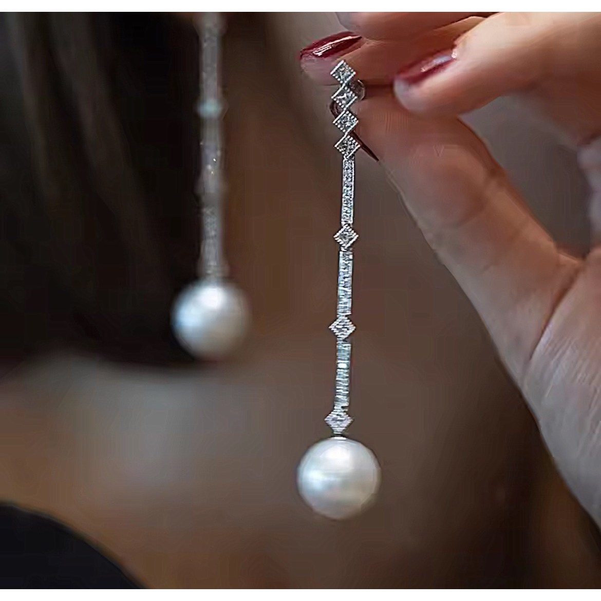 제이혜리 우아한 진주 롱 드롭 귀걸이 큐빅 신부 지르콘 웨딩 럭셔리 파티 시상식 약혼식 한복 대회