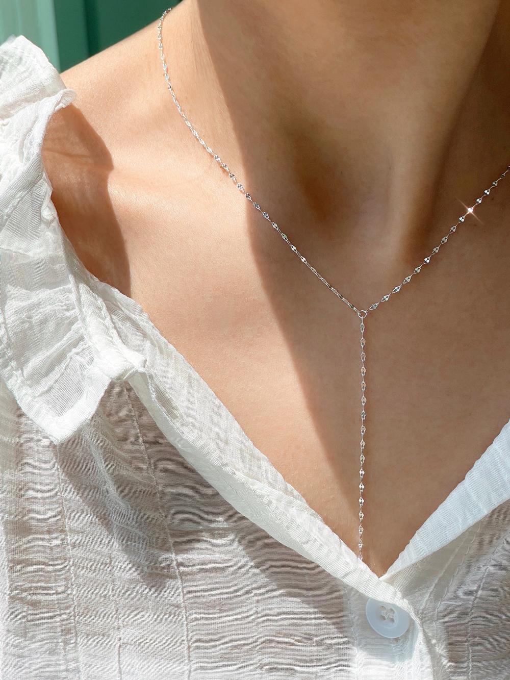 실버925 롱 체인 목걸이 Y 이태리 플랫 드롭