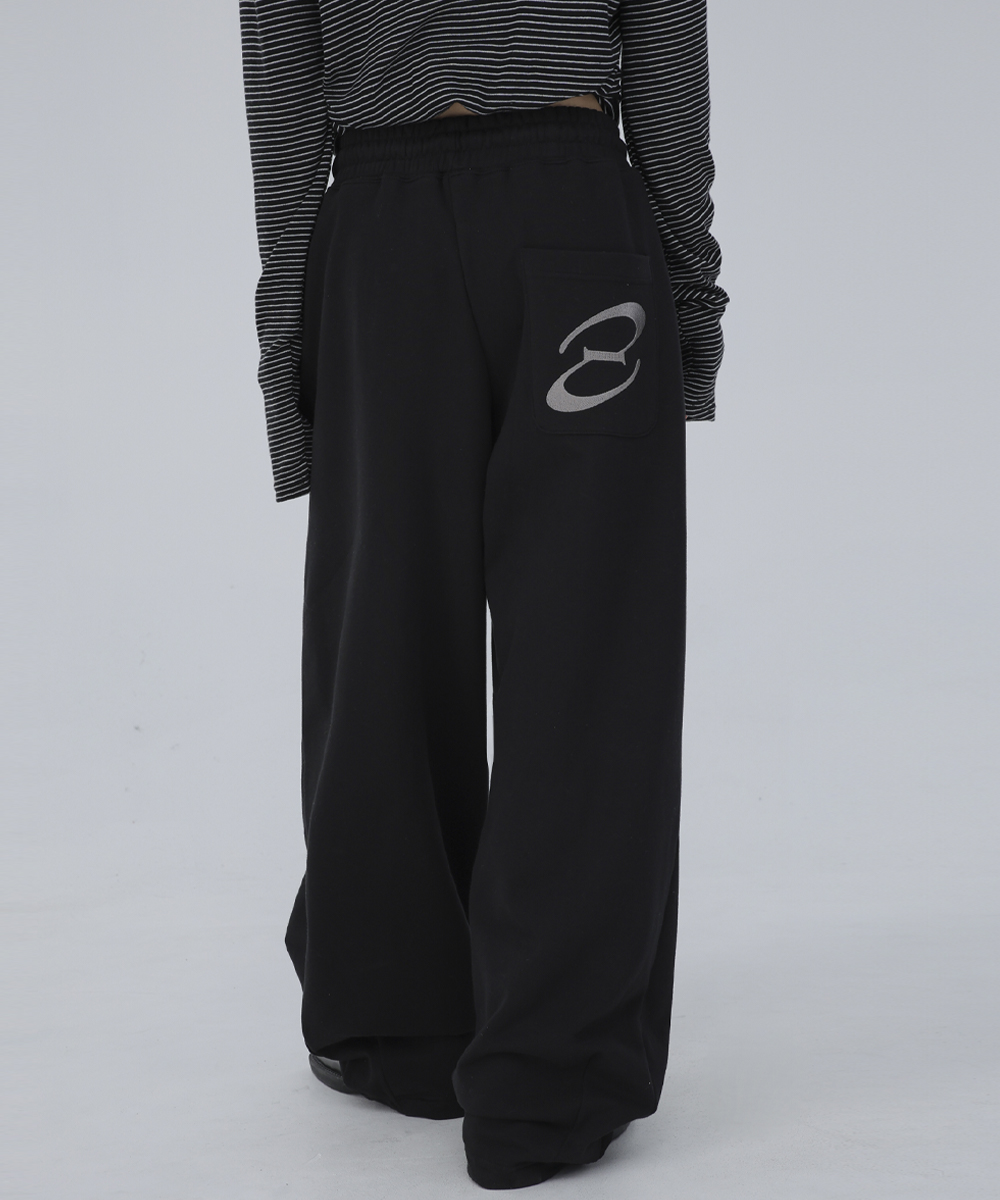 백 로고 자수 벌룬 팬츠 블랙