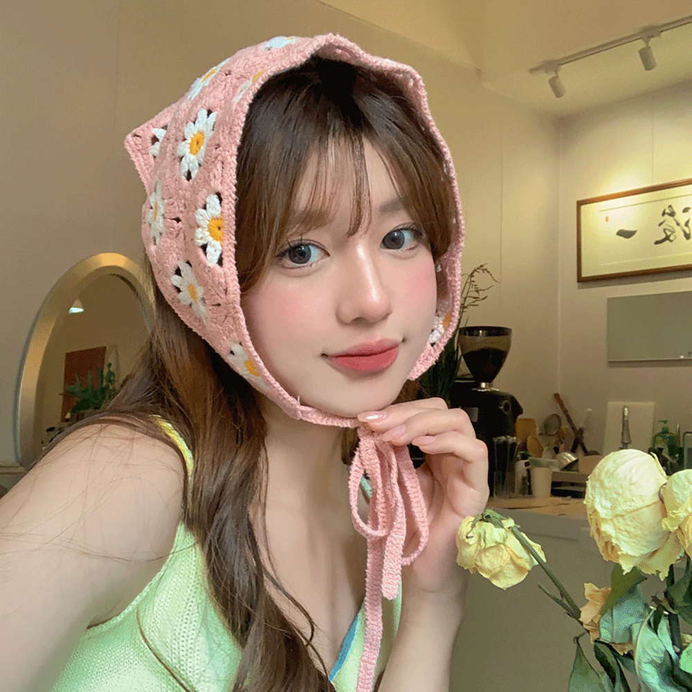 [무배] 여름 뜨개 헤어 커치프 니트 두건 반다나 삼각 스카프