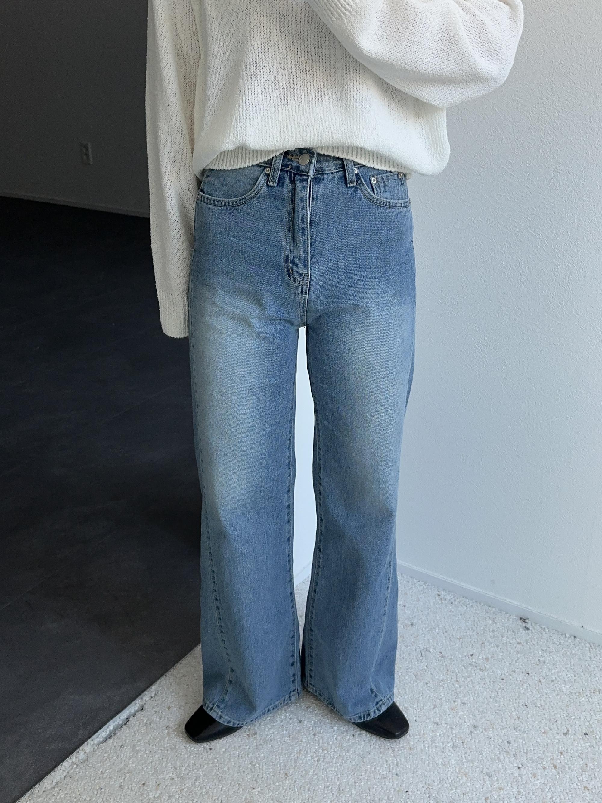 공일 여성 하이웨스트 일자 중청 데님 청바지
