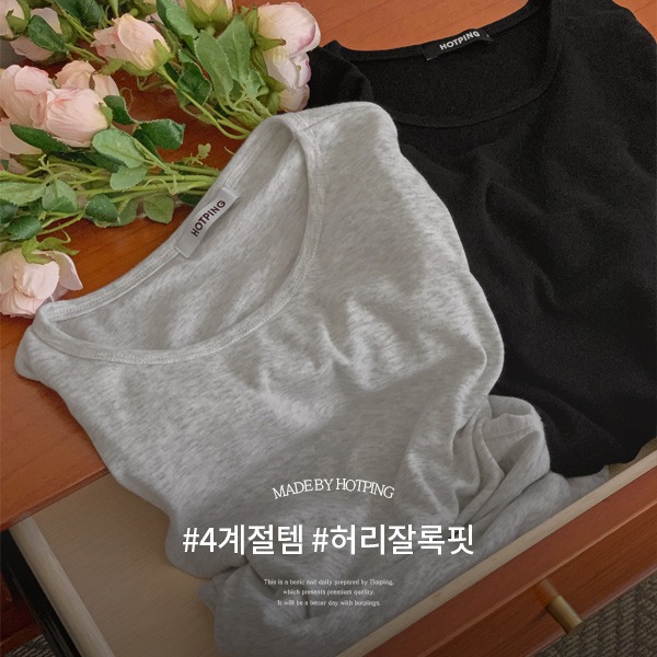 [4계절템/잘록허리][MADE] 촉감좋은 밑단라운딩 베이직 세미크롭 긴팔티셔츠(44~110) (빅사이즈티셔츠-이너티셔츠-U넥-후라이스조직-4게절티셔츠-레이어드-체형커버-군살커버-롱슬리브)