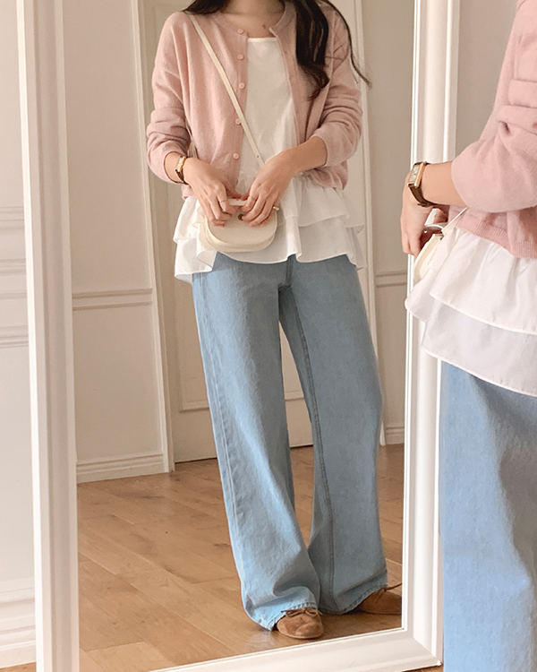 리쿠 여름 세미 와이드핏 데님 팬츠