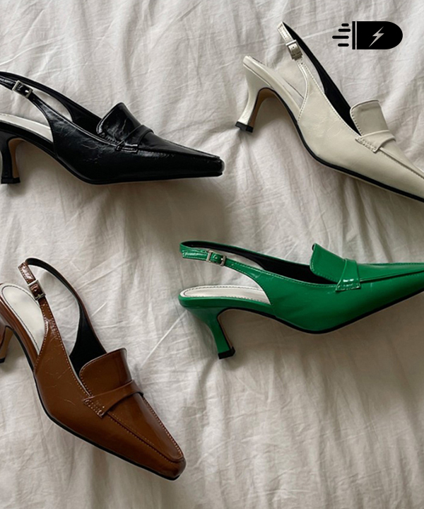 [빠른출고] 앤티크 슬링백 로퍼힐 (블랙,브라운,그린,아이보리)