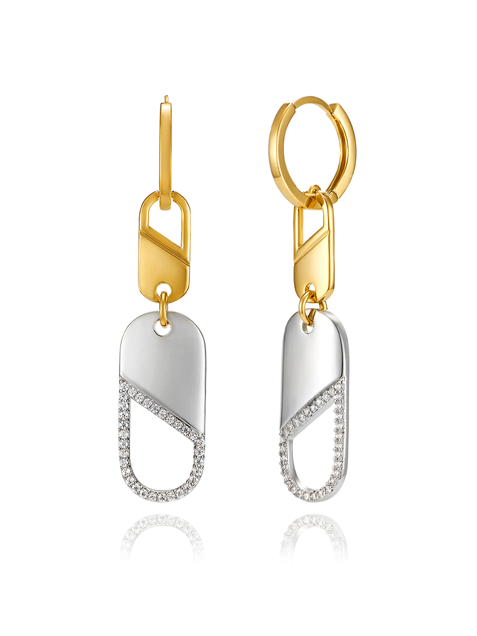 셀럽 Pick 14K Pin 콤비 드롭 원터치 귀걸이 ELGPEE391