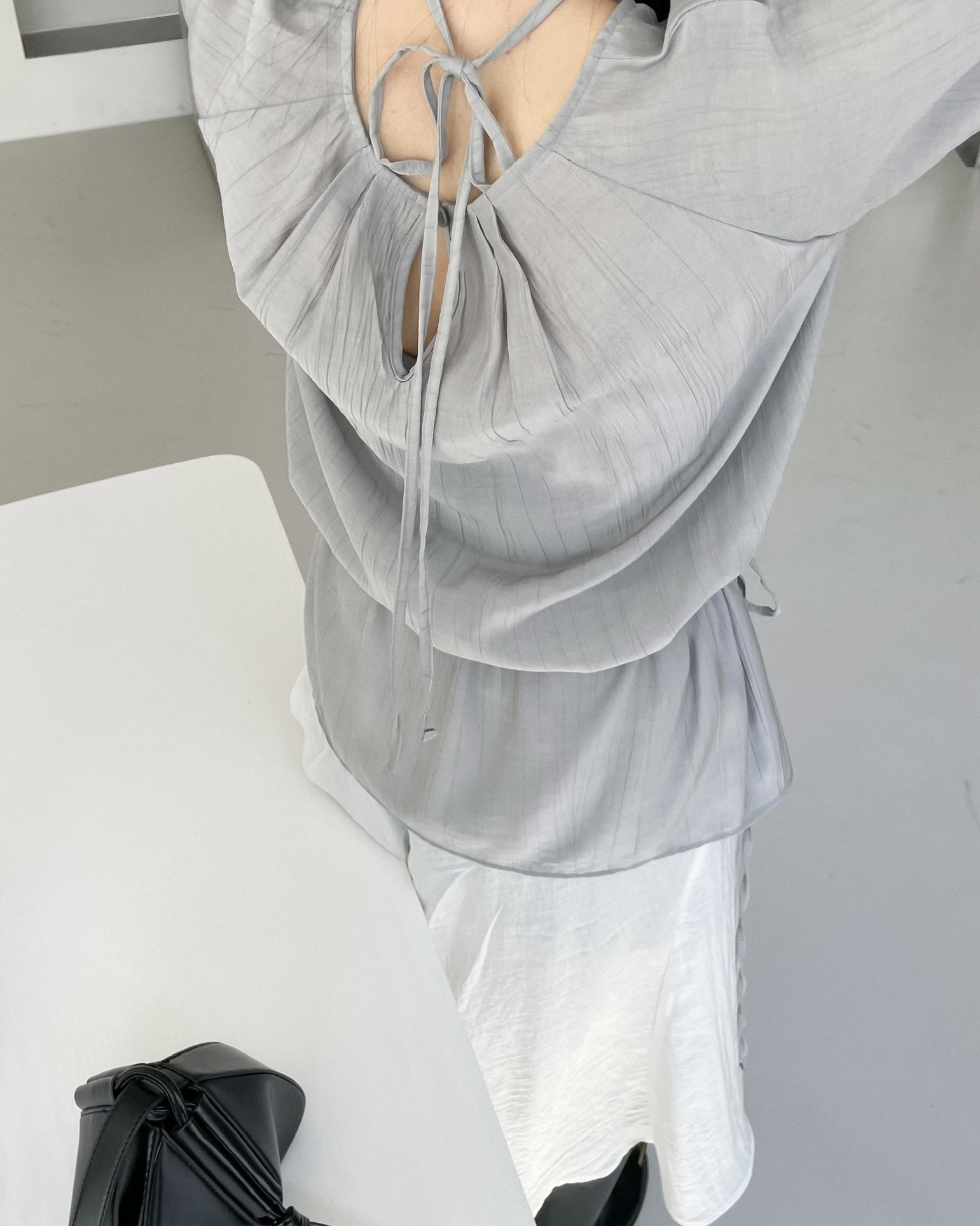 [MADE] 리프 텍스쳐 홀터 셔링 블라우스 [3co] *당일발송