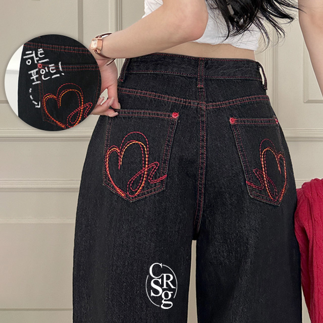 [하트스티치/S~L까지] 뒷포켓 러브 롱 와이드 데님팬츠