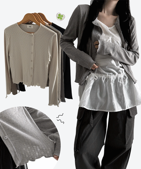 [재진행♥/대표추천] 꼭 입어보세요 아일릿 펀칭 비대칭 버튼 가디건