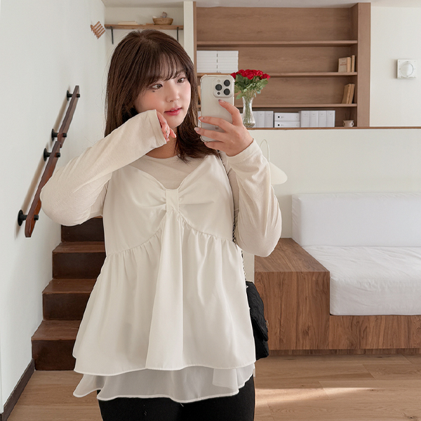 [빅사이즈]이블렛 리헨비 레이어드 셔링 뷔스티에 제이스타일