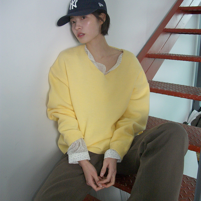 루즈 브이넥 니트 (3color) (살안타템 여름 니트 레이어드니트 브이넥 브이넥니트 오프솔더 오프숄더니트 데이트룩 레이어드)