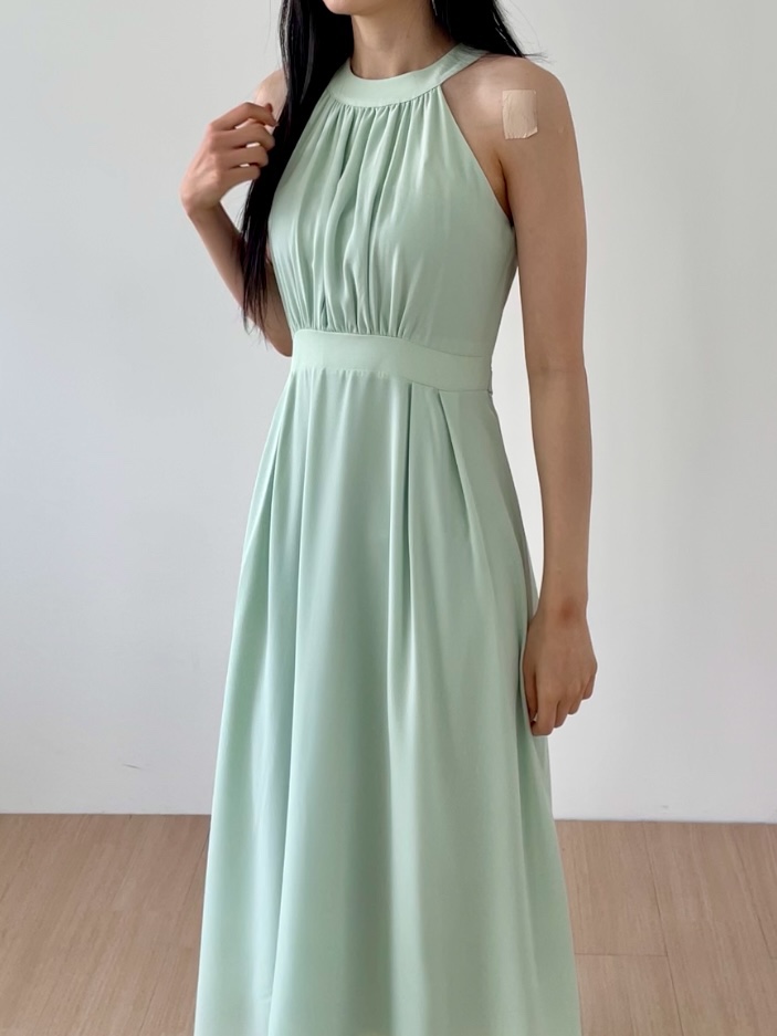 (4컬러!)파스텔 리본 홀터넥 휴양지 파티룩 여성 롱원피스