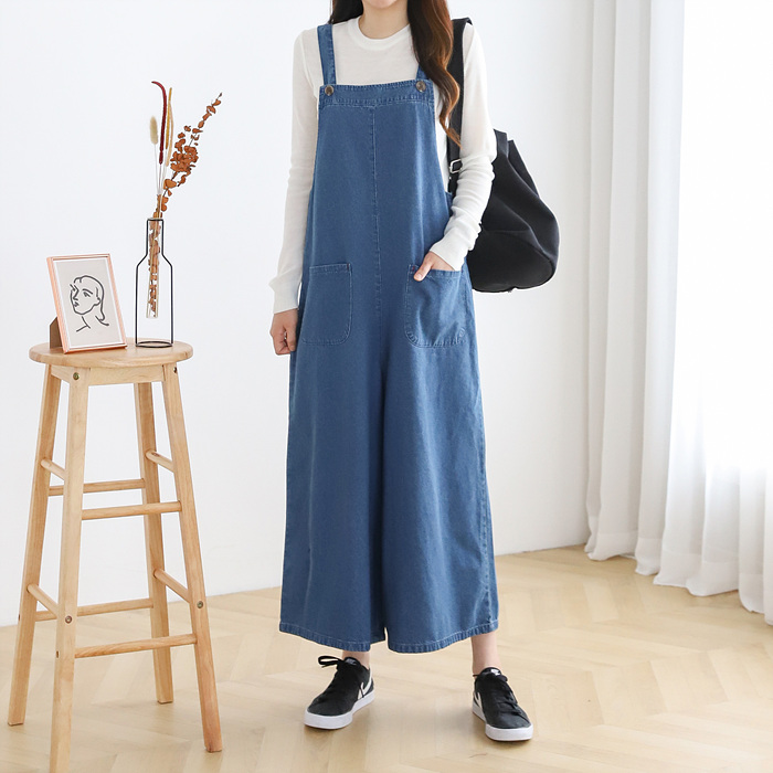 데님 와이드 멜빵 팬츠_O2503DP006A