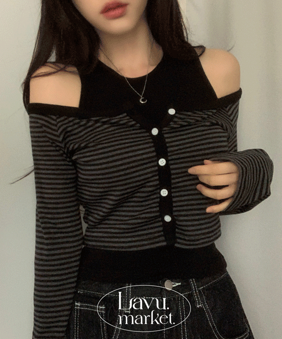 나시가디건set! 닝이 스트라이프 레이어드 나시 가디건 2color [크롭가디건/단가라가디건/레이어드세트/줄지]