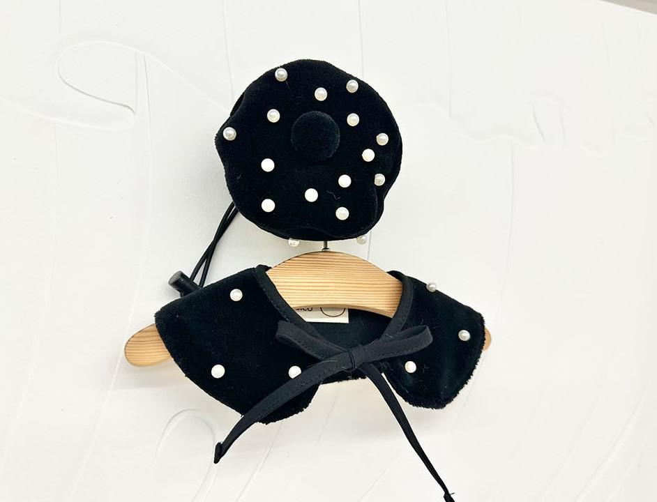 진주 벨벳 케이프 베레모 모자 강아지옷 애견의류