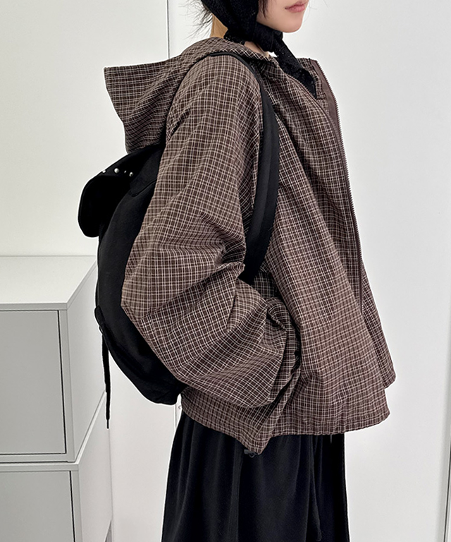 [오늘출발/인기템✨] 잔체크 투웨이 집업 스트링 후드 바람막이 (3color)