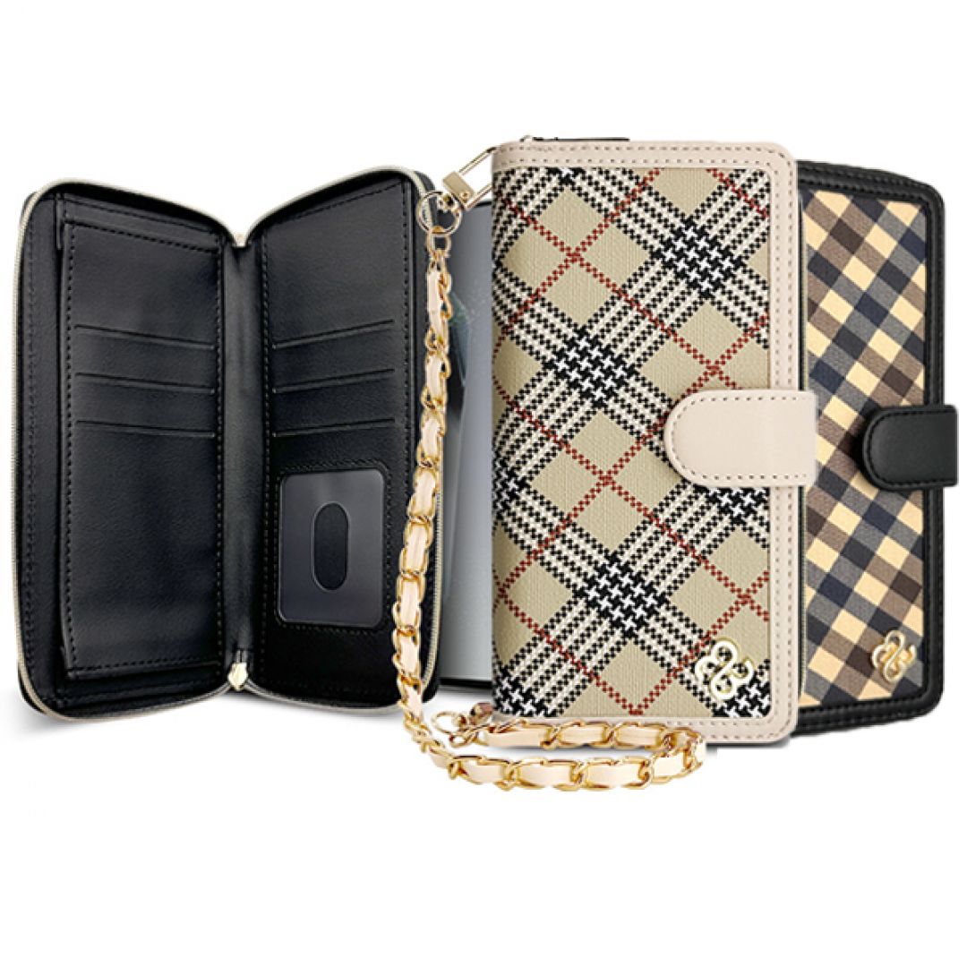 체크 패턴 스트랩 지퍼 월렛 다이어리 케이스-갤럭시 S21 S22 S23 S24 S25 플러스 울트라 엣지 FE
