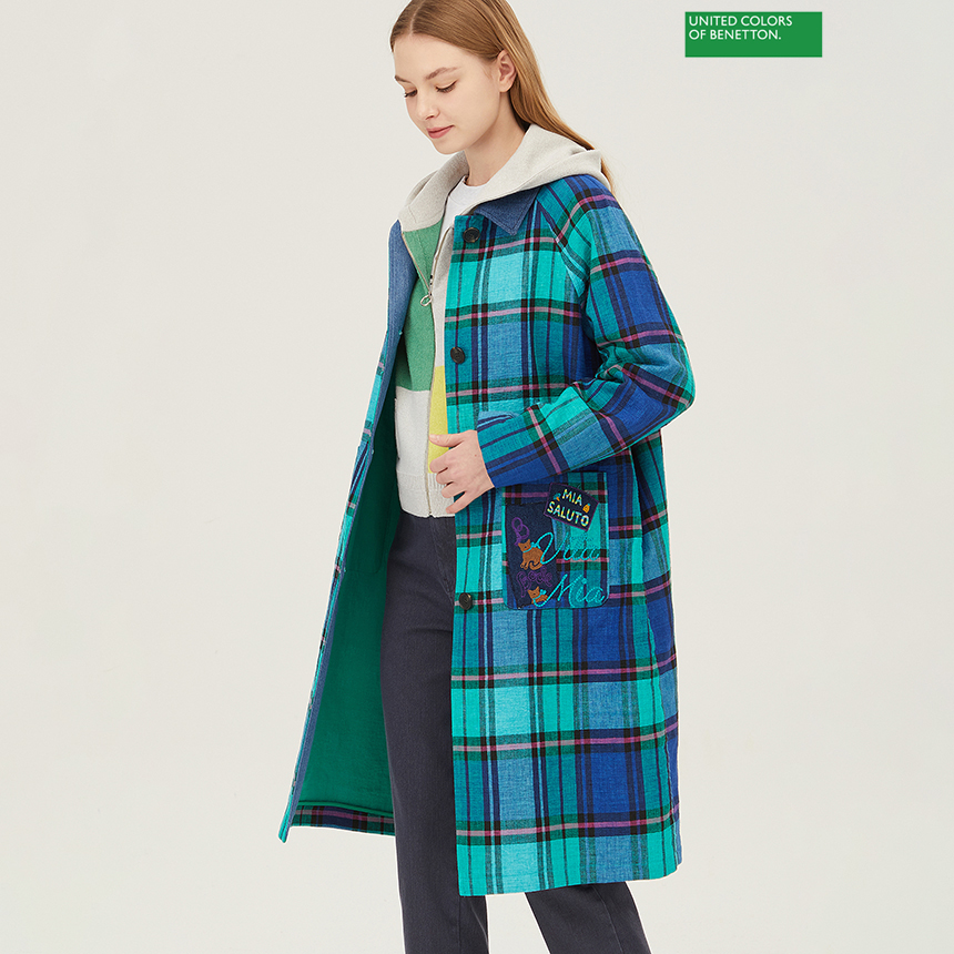 베네통 나나 체크 데님 롱코트 BACTA1511