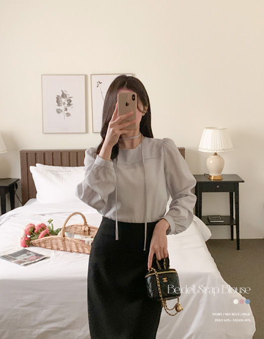 베이델 스트랩 블라우스 3color [긴팔/링클/퍼프/시스루/루즈핏/봄/간절기/하객/데일리/데이트/룩/벚꽃/격식룩]