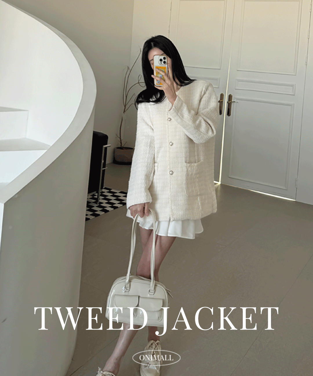 브런치 오버핏 라운드넥 하프 트위드 자켓 - 가을 하객룩 아우터/데일리룩/오피스룩/출근룩