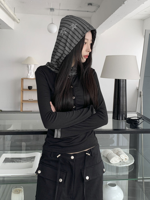 [20%할인/y2k♡/레이어드템] 별 단가라 레이어드 슬림 후드 티셔츠
